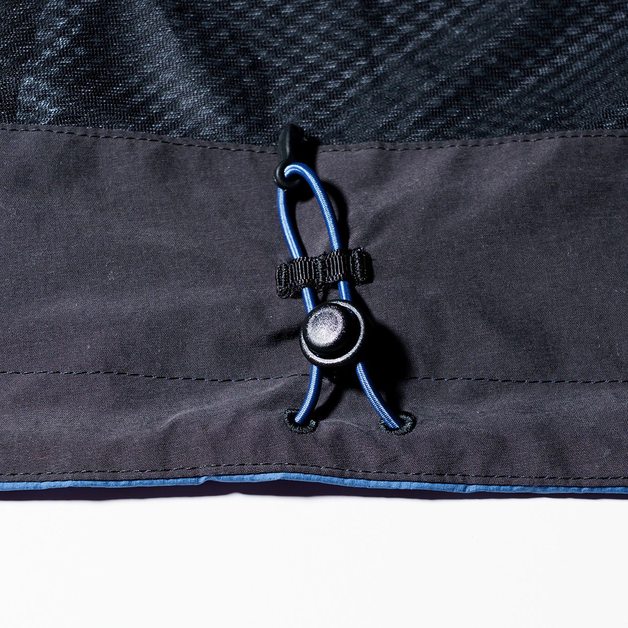 その次世代メンブレンに60Dナイロンの表地とトリコットの裏地を重ねた3層構造を採用。またPFAS(フッ素化合物)フリーのメンブレンは環境性能も向上しており、高い耐久性と相まって、まさに新世代の防水透湿素材となっている。