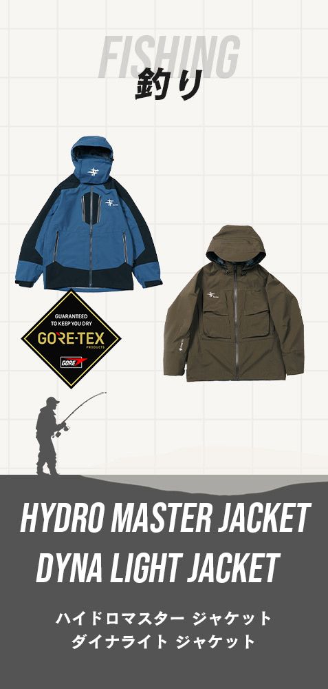 100kmのボートスピードにも耐え、確実に雨を防ぐ「ハイドロマスタージャケット&ビブ」、キャスティングを妨げず、収納力も備えたマルチパーパスな「ダイナライトジャケット」。タフなコンディションでも釣果を支えるフィッシングジャケットをラインアップ。