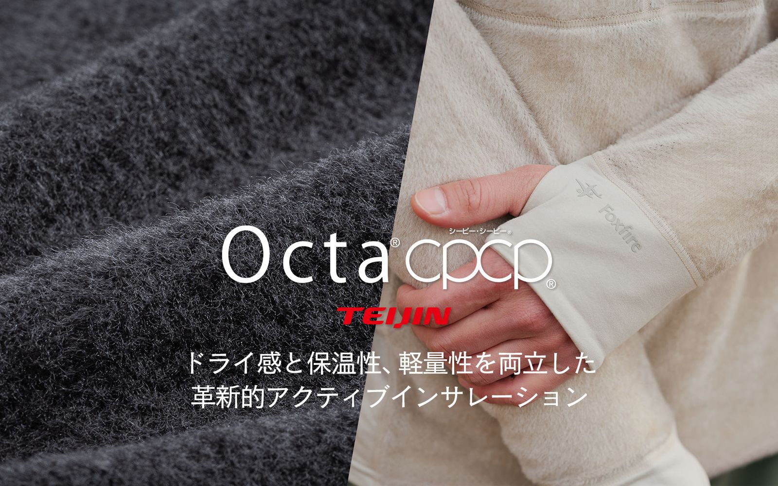 あらゆるアウトドアシーンにフィットし、快適な着心地を実現する「Octa®(オクタ®)」。アウトドアに必要な「軽量性」「保温性」「吸汗速乾性」などの機能性を高いレベルで兼ね備えた運動中に着られる防寒着として人気。