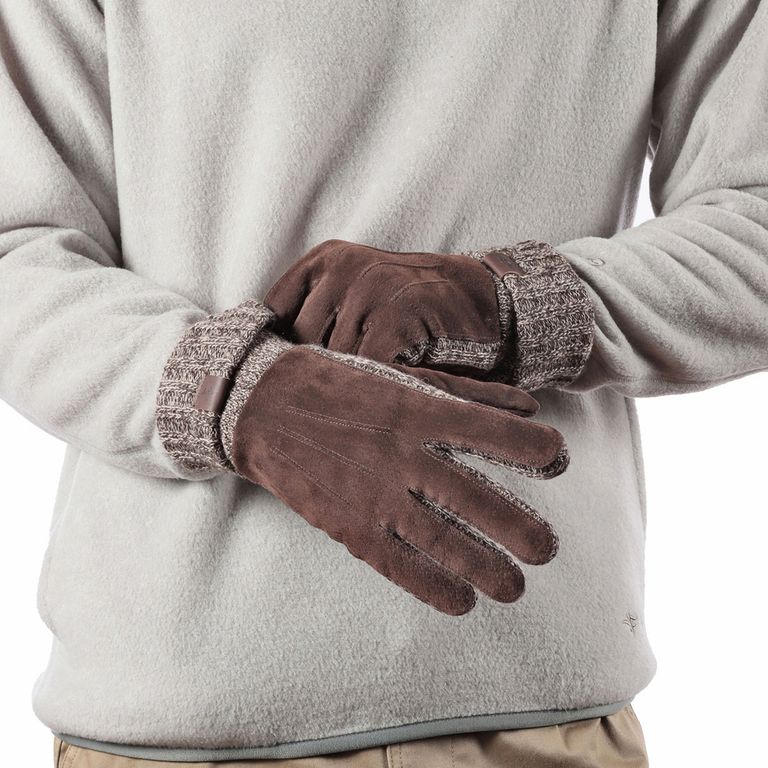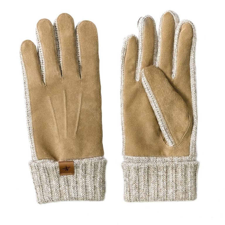 ニットを挟み込むように手のひらと甲にレザーを配しています。