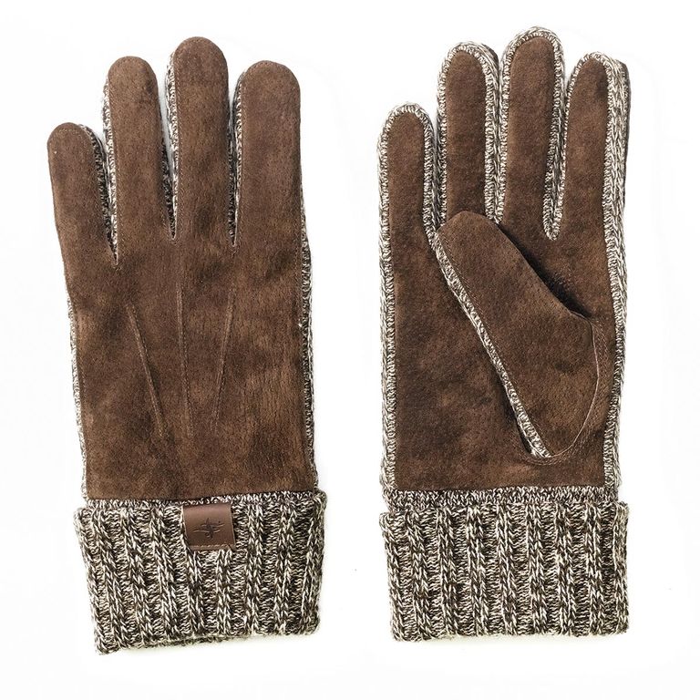 ニットを挟み込むように手のひらと甲にレザーを配しています。