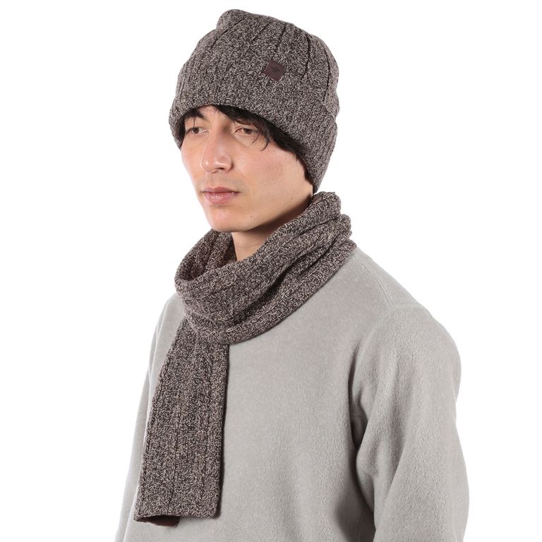 裁断クズや落ちワタを再利用したアップサイクルウールと、廃棄PETボトルをリサイクルしたポリエステルの混紡ニットを使用した定番デザインのニットマフラーです。