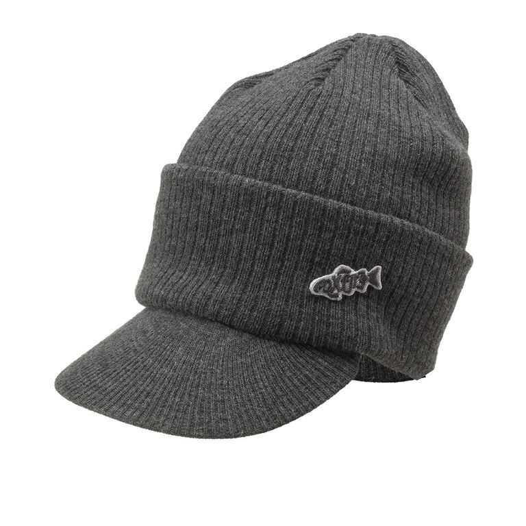 Foxfireの文字で魚を模ったワッペンがワンポイントのツバ付きニットキャップです。