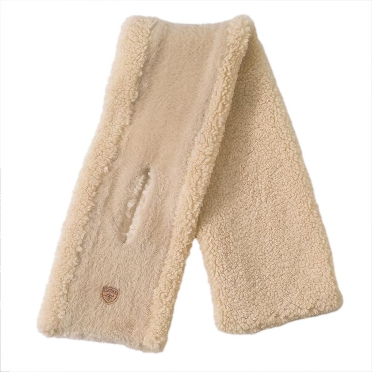 ふわふわした柔らかな手触りが魅力のモールヤーンニットとボリューム感のあるボアフリースを組み合わせた、保温性抜群のマフラーです。