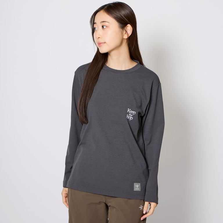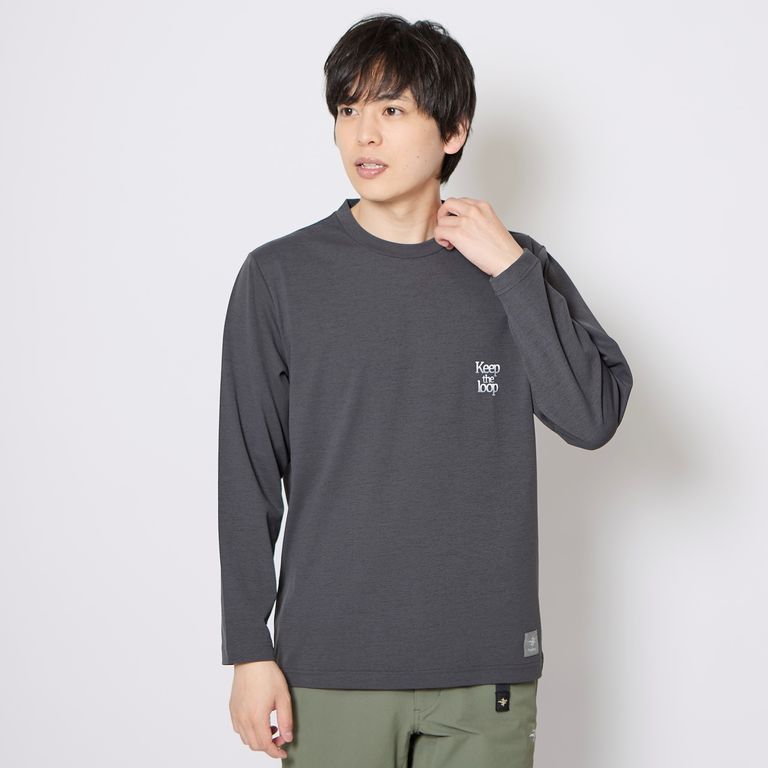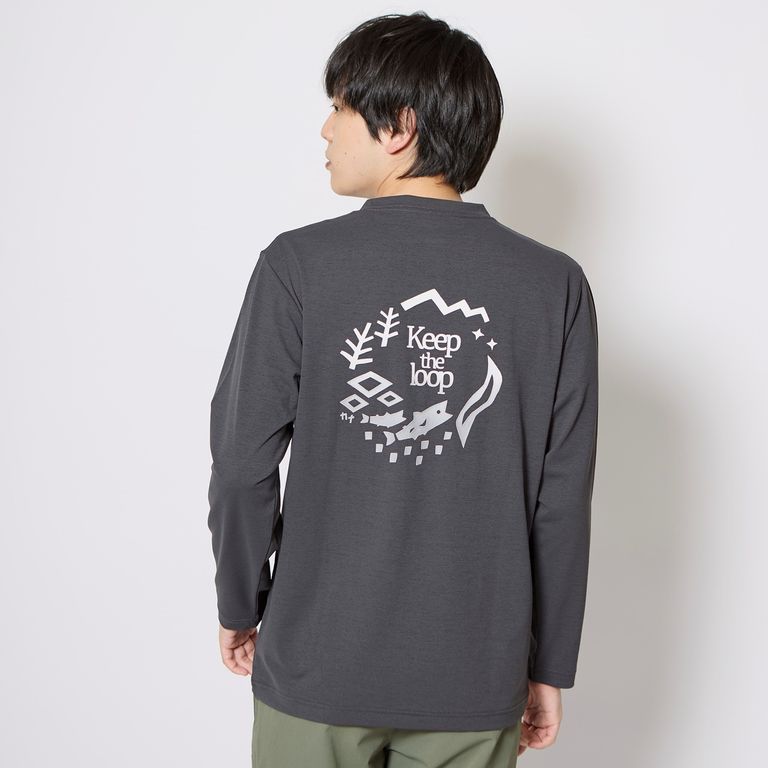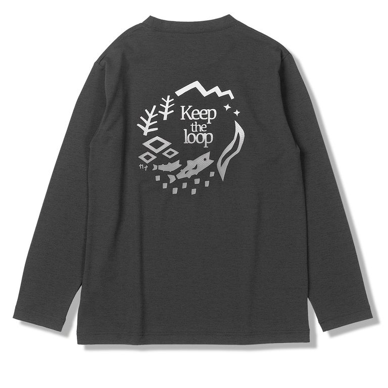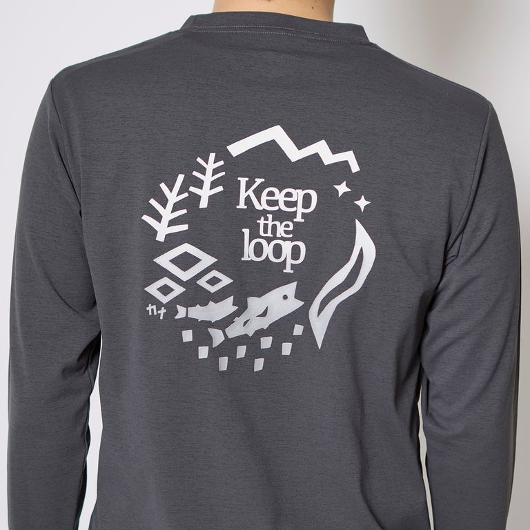 ソフトな風合いで肌触りが滑らかなジャージニット素材で単体での着用はもちろん、レイヤード時のインナーとしても着心地に優れています。自然の循環をテーマにした「Keep the loop」のイラストを背面にプリントしました。