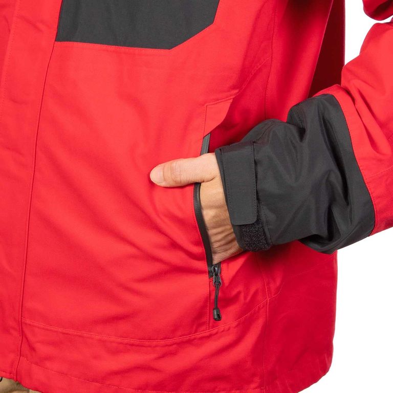 過酷な自然条件で遭遇する悪天候の条件下を想定し、防水性(10,000mm以上)を備えた高耐水圧透湿素材。レインギアとしての防水性能と透湿性を備えており、縫い目にはシームシーリンング加工が施されています。