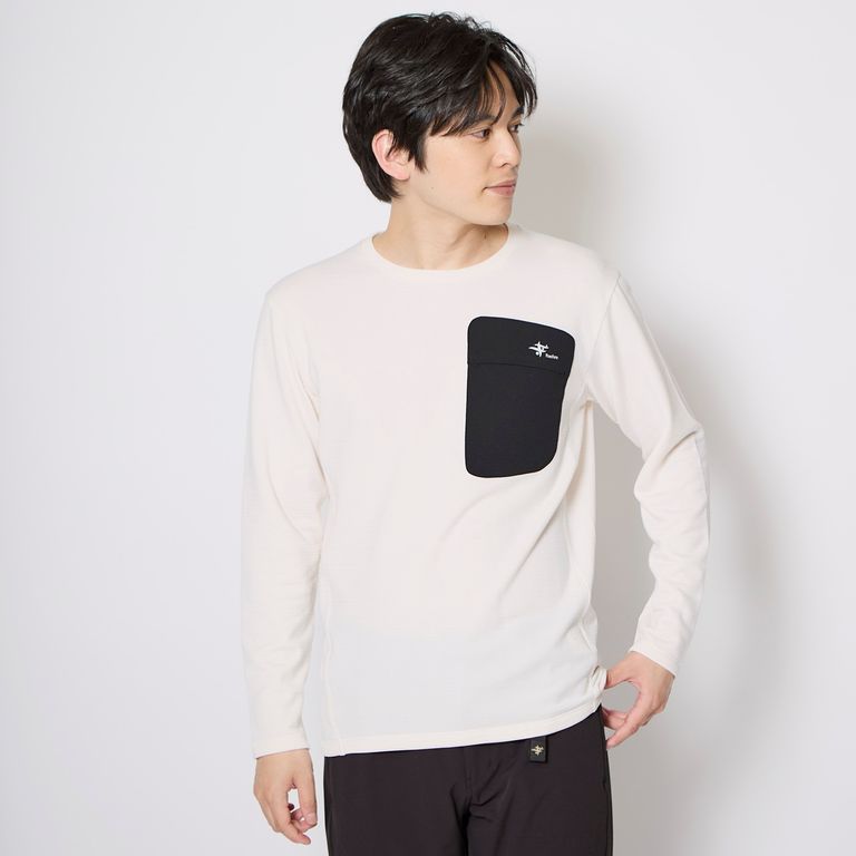 メリノウールを立体ブロック状に編み込んだグリッド構造が、ウールの優れた性質をアウトドアシーンに最適化。保温性に加えて、通気性や軽さ、伸びのある着心地が特徴のクルーカットソーです。
