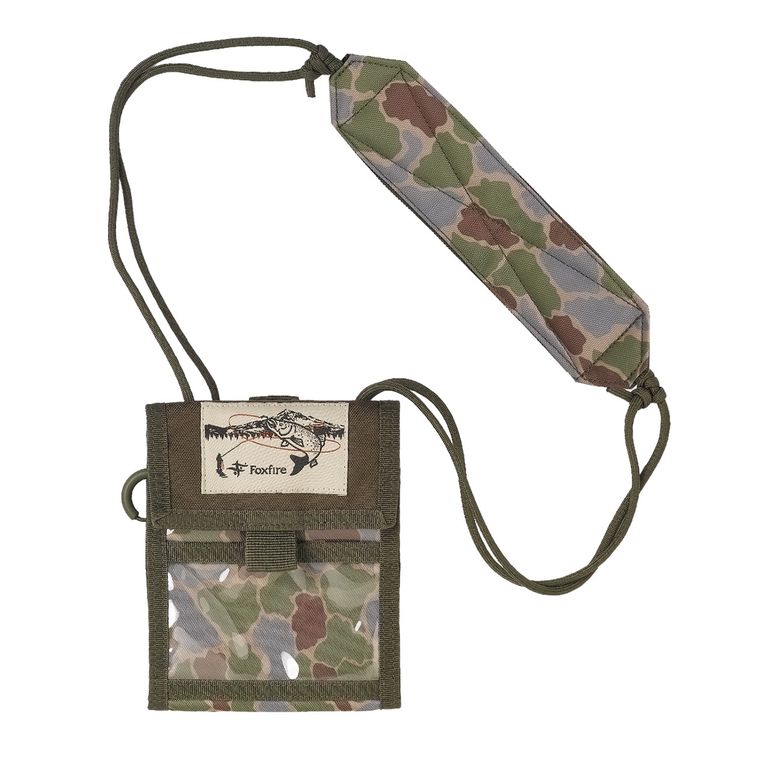 Foxfireオリジナルのフィッシュアイカモフラージュ柄をプリントした首掛けウォレットです。