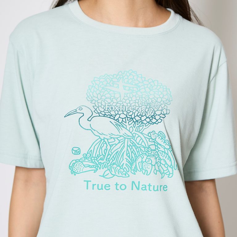 西表島のマングローブ林に住む生き物を自然派イラストレーターやまとけいこさんによるイラストで表現したTシャツ。特殊セラミック繊維による遮熱効果で衣服内温度-3℃を実現した「コカゲシールド」素材は、紫外線を遮断することにより、淡色でも高いUV遮蔽率を発揮します。速乾性に優れたドライな着心地は南国へのトラベルにも最適です。