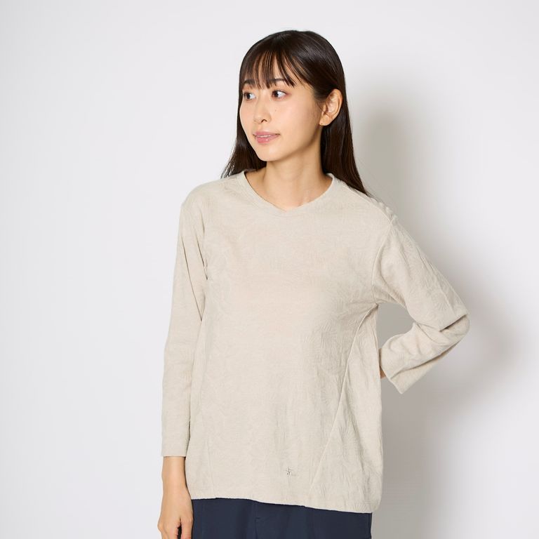 エアリー感のあるジャカード生地を使用したフラワー柄の7分袖シャツ