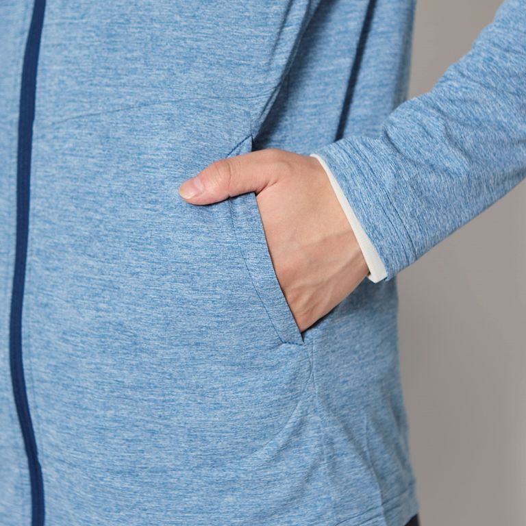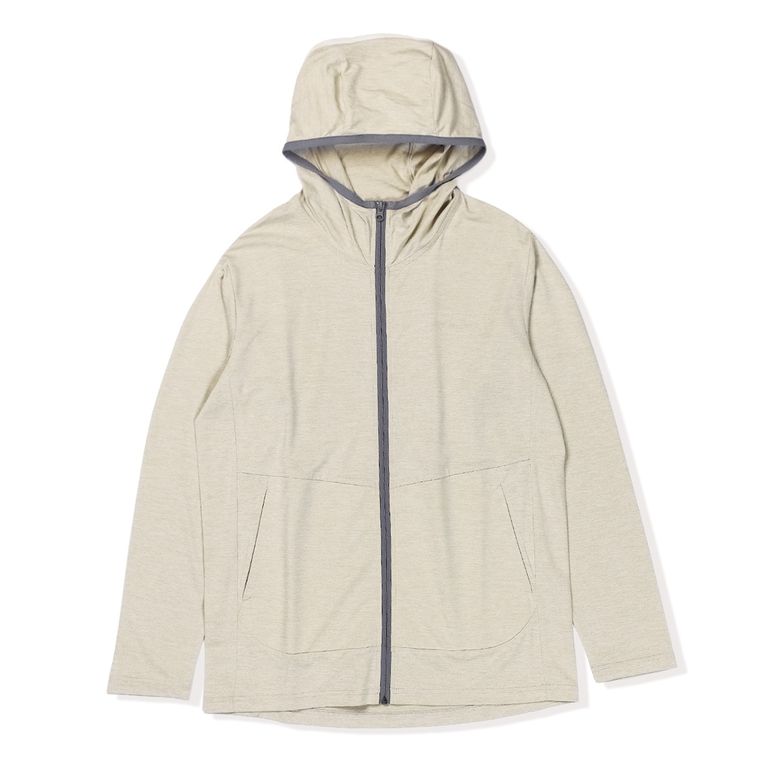 防虫、吸汗速乾、UVカット機能を持つトランスウェット・スコーロン素材のフルジップパーカー。