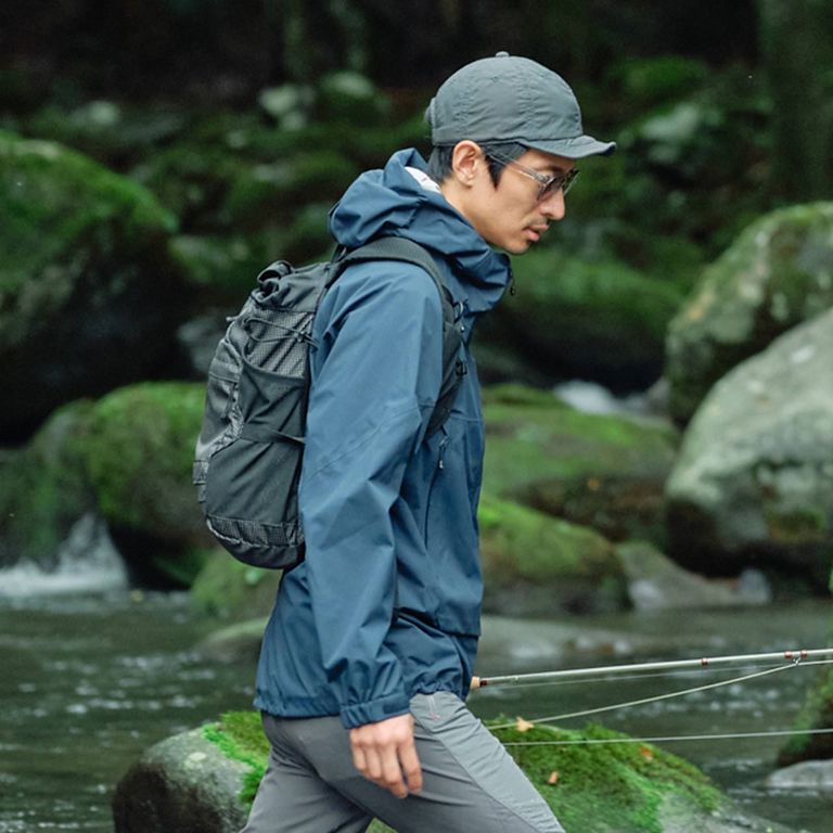 15Lのメイン気室には、釣行に必要なミニマム装備をすっきり収納可能です。ロールトップ構造により、荷物量に応じてサイズ調整ができ、内部の荷物が動くのも防いでくれます。さらに、ランディングネット用のD環や揺れを抑えるストラップを備え、サイドにはボトルホルダーと収納式ロッドホルダーを装備。フロントハーネスにはメッシュポケットを配し、小型のフライボックスやアクセサリーを手元にまとめておけるなど、ミニマムながら実用性に優れた設計です。