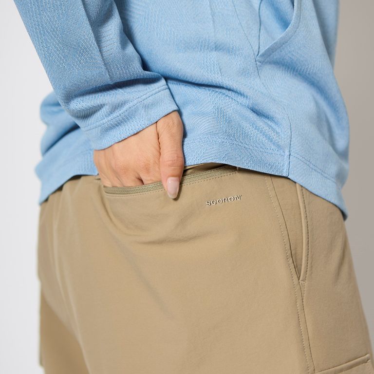 防虫、UVカット機能を持つスコーロン素材のサイドカーゴパンツ。