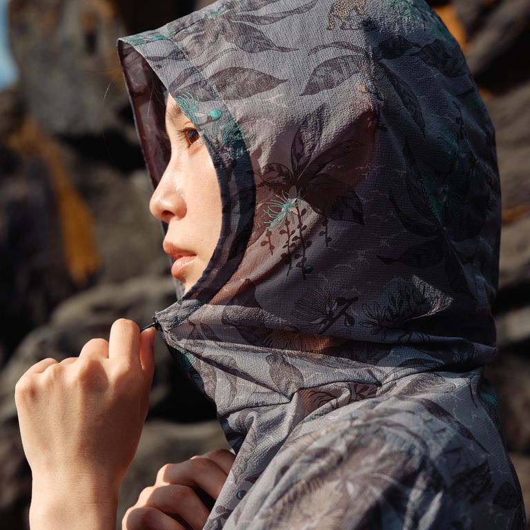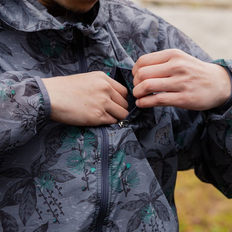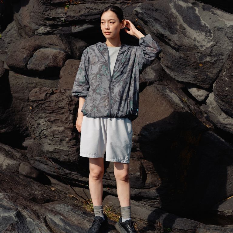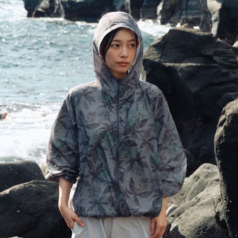 グレーカラーは西表島に生息する天然記念物"イリオモテヤマネコ"と、夜に花を咲かせ朝には散っていく幻想的な一夜花"サガリバナ"をデザインモチーフにしたオリジナルテキスタイルを採用。