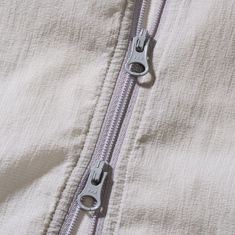 左胸にはウェビングテープとマチ付きポケットを配したフィッシング仕様のディテール。