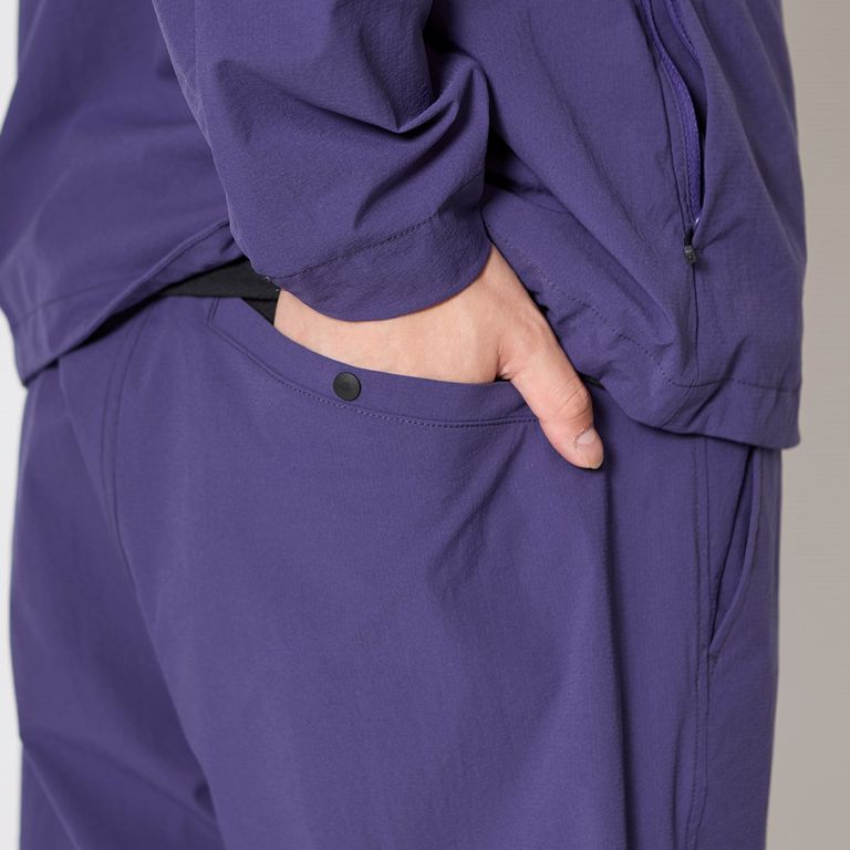 縦にも横にも伸びる2WAYストレッチの撥水ポリエステル素材を使用したパンツ。